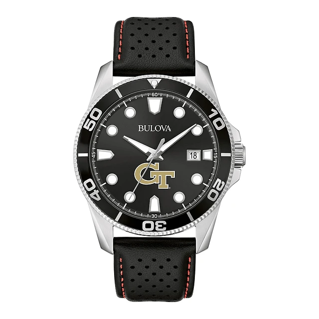 Men's Bulova Black Georgia Tech Yellow Jackets Corporate Collection Leather Strap Watch