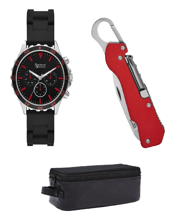 American Exchange Men's Quartz Brown Polyurethane Leather Strap Watch 48mm Gift Set