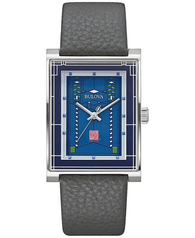 Bulova Men's Frank Lloyd Wright Dana-Thomas House Black Leather Strap Watch 30x47mm