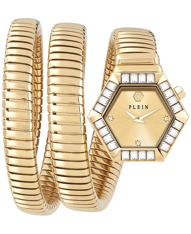 Philipp Plein Women's The Hexagon Gold-Tone Stainless Steel Crystal Link Wrap Bracelet Watch 28mm