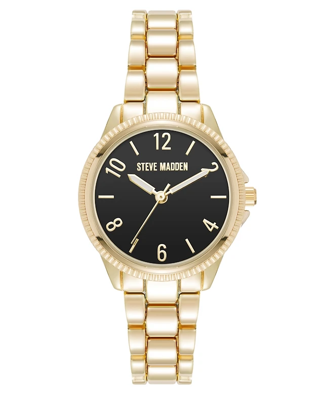 Steve Madden Women's Everyday Black and Gold-Tone Alloy Metal Bracelet Watch, 30mm