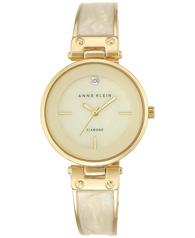 Anne Klein Women's Quartz Ivory Pearlescent Acetate and Gold-Tone Metal Alloy Link Bracelet Watch, 30mm