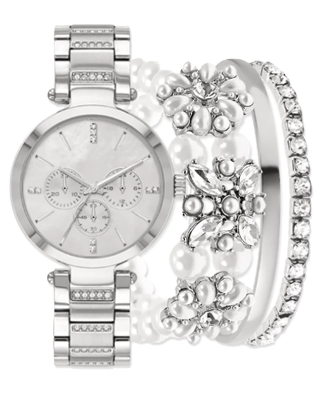 Jessica Carlyle Women's Crystal Bracelet Watch 30mm & 3-Pc. Necklace Gift Set