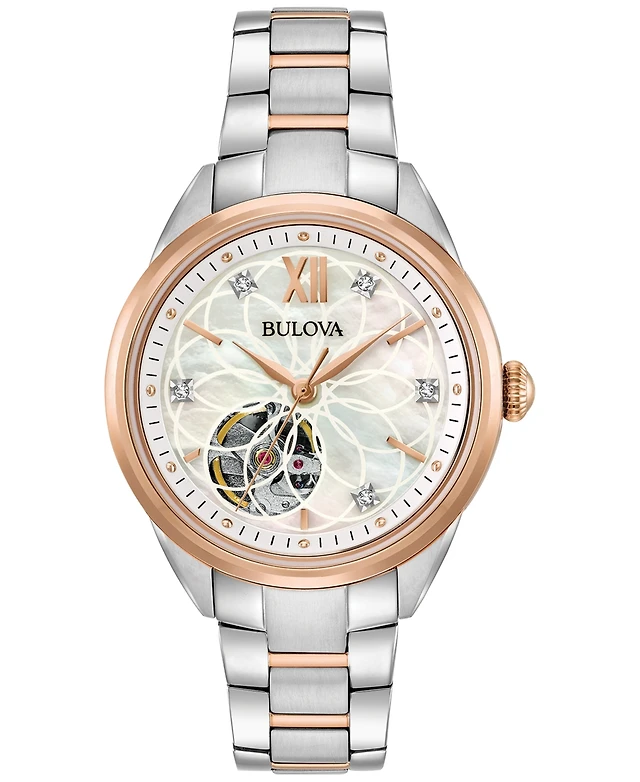 Bulova Women's Automatic Diamond Accent Two-Tone Stainless Steel Bracelet Watch 34mm 98P170