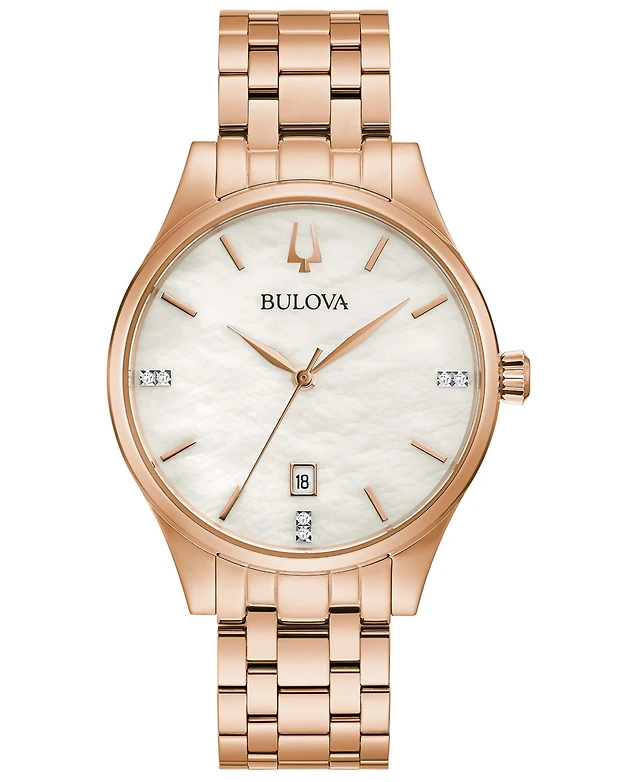 Bulova Women's Classic Diamond-Accent Rose Gold-Tone Stainless Steel Bracelet Watch 36mm