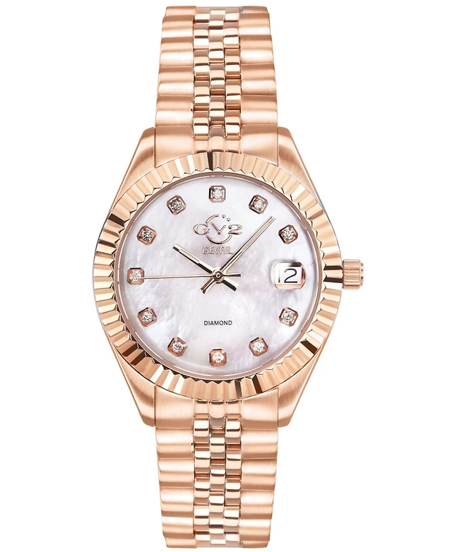 Gevril Women's Siena Swiss Quartz Ion Plating Rose Stainless Steel Bracelet Watch 38mm
