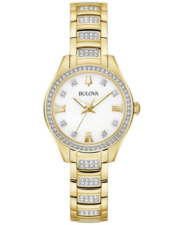 Bulova Women's Diamond-Accent Stainless Steel Bangle Bracelet Watch 18x33mm