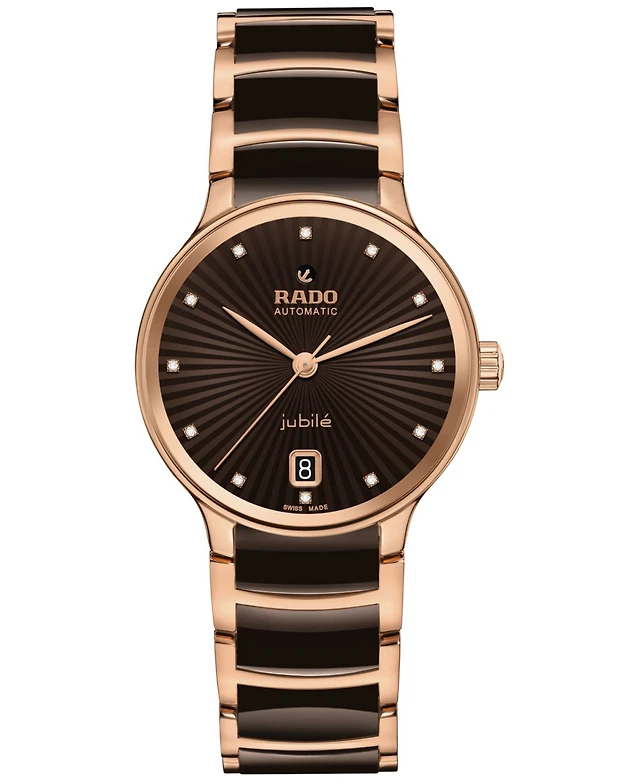 Rado Women's Swiss Automatic Centrix Diamond Accent Ceramic & Rose Gold Pvd Stainless Steel Bracelet Watch 35mm