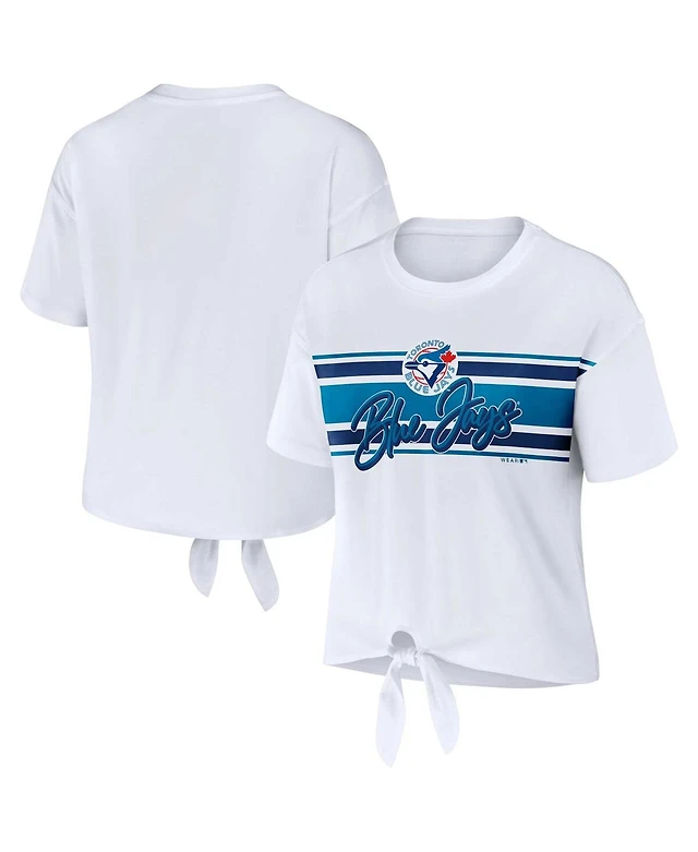 Women's Wear by Erin Andrews White Toronto Blue Jays Front Tie T-shirt