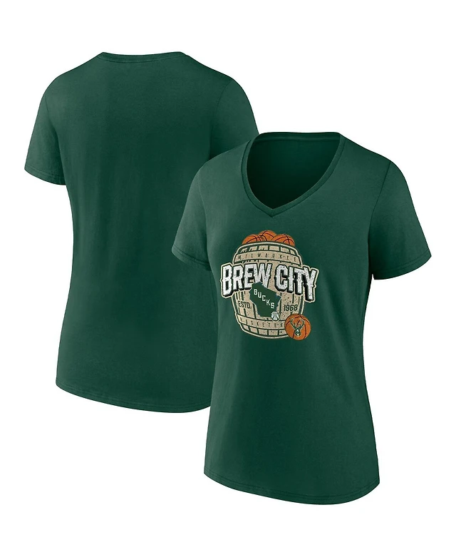 Women's Fanatics Hunter Green Milwaukee Bucks Hometown Collection Brew City V-Neck T-shirt