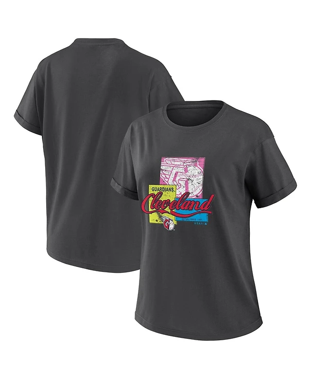 Wear by Erin Andrews Women's Charcoal Cleveland Guardians Domestic Box Color Boyfriend T-Shirt