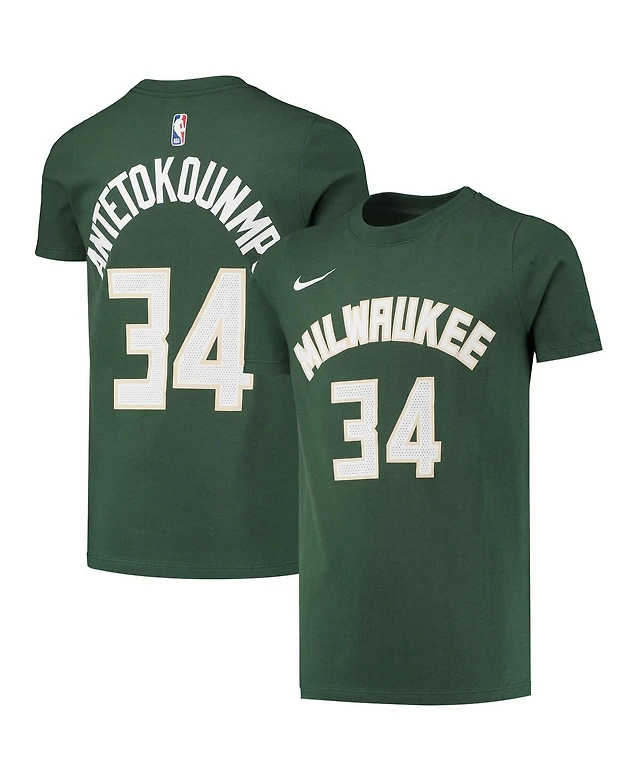 Big Boys Nike Giannis Antetokounmpo Hunter Green Milwaukee Bucks Logo Name and Number Performance T-shirt