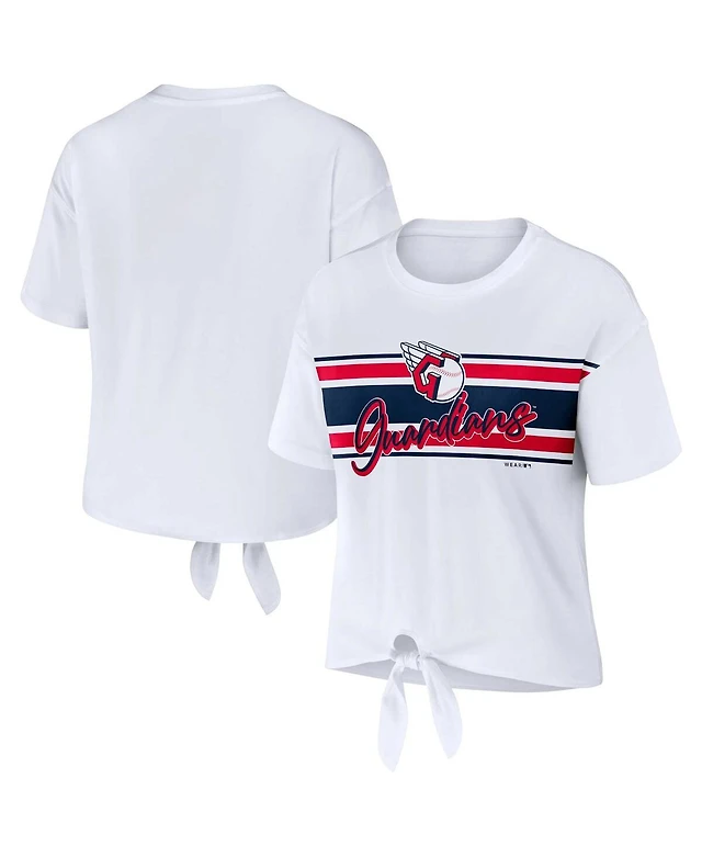Women's Wear by Erin Andrews White Cleveland Guardians Front Tie T-shirt
