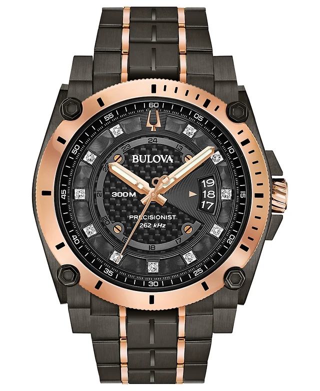 Bulova Men's Precisionist Champlain Diamond-Accent Gray & Rose Gold-Tone Stainless Steel Bracelet Watch 46.5mm