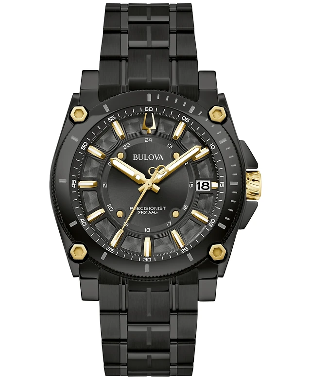 Bulova Men's Precisionist Icon Black-Tone Stainless Steel Bracelet Watch 40mm