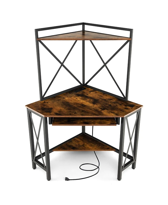 L-shaped Computer Desk with Power Outlet 51" Corner Workstation Rustic