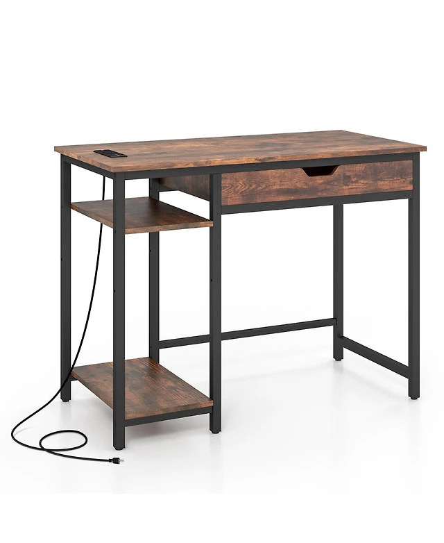 Computer Desk with Power Outlet Keyboard Tray and 3 Large Drawers