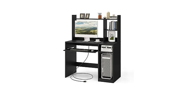 Mecale Space Saving Computer Desk with Hidden Compartment and Open Storage Shelves