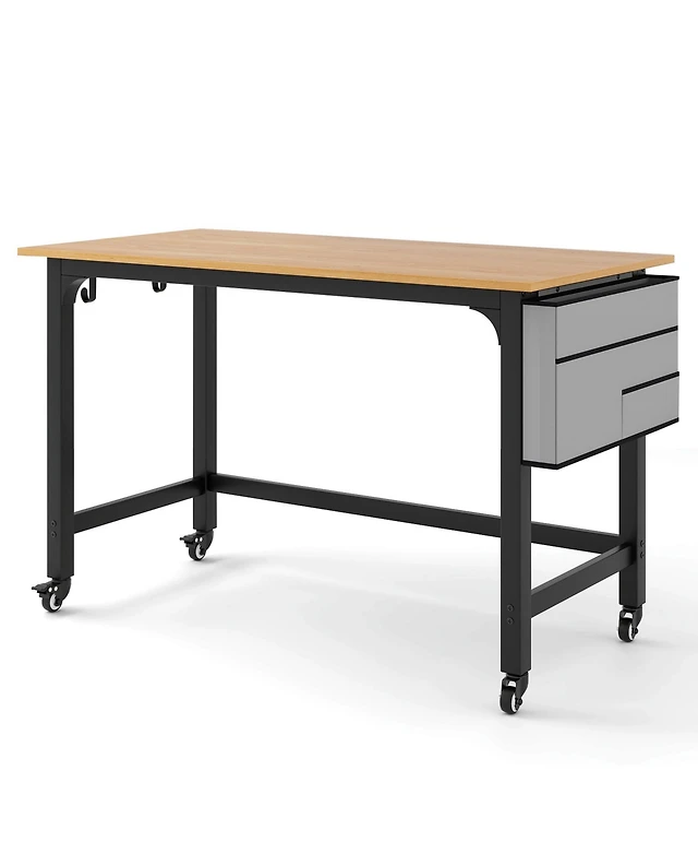 Mecale Computer Desk with Power Outlet Keyboard Tray and 3 Large Drawers