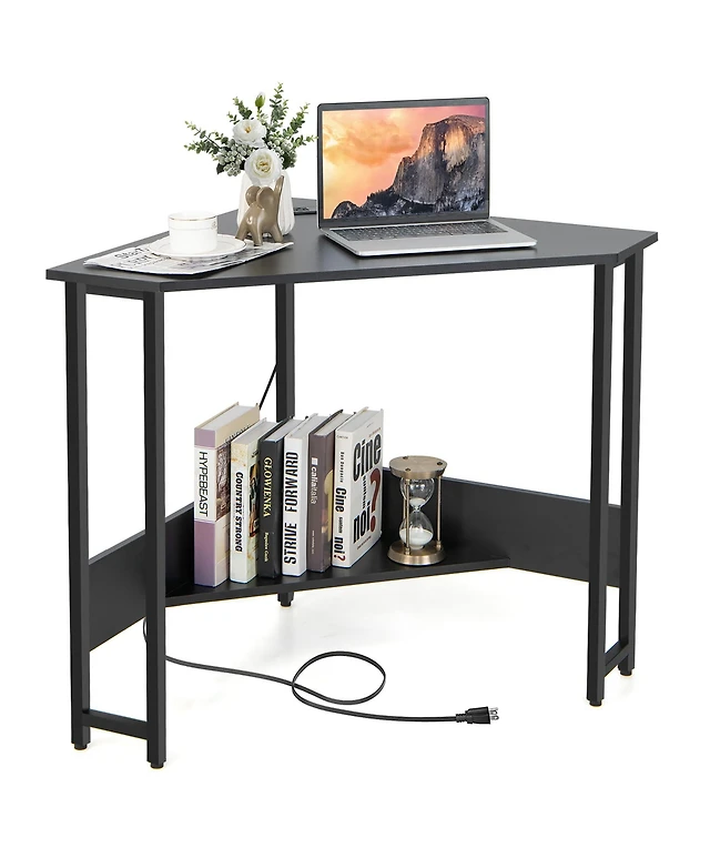 Triangle Computer Desk Corner Home Office w/Power Outlets Usb Ports
