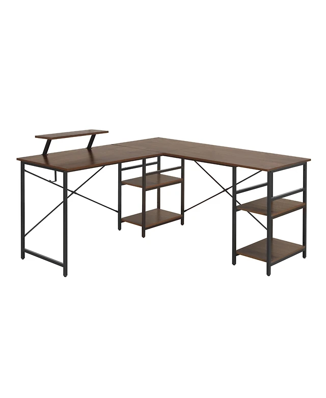 Techni Mobili Wood L-Shape with Storage Shelves Industrial Desk