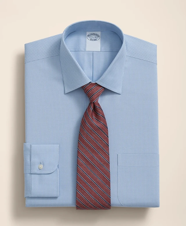 Brooks Brothers X Thomas Mason<sup>®</sup> Cotton Poplin Button-Down Collar, Micro Checked Dress Shirt