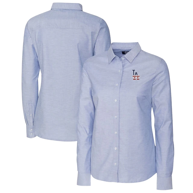 Women's Cutter & Buck Light Blue Los Angeles Dodgers Americana Logo Oxford Stretch Long Sleeve Button-Up Shirt