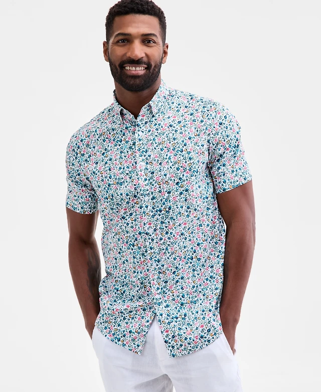 Club Room Men's Regular-Fit Stretch Floral Button-Down Poplin Shirt, Exclusively at Macy's