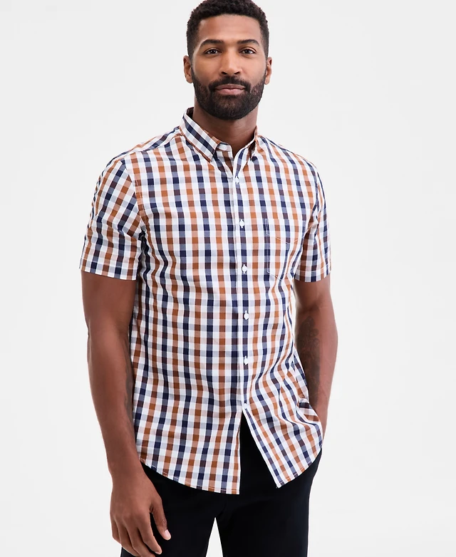Tommy Hilfiger Men's Regular-Fit Flex Gingham Check Button-Down Poplin Shirt