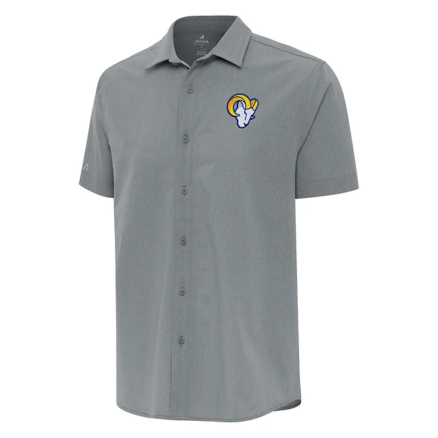 Men's Antigua Gray Los Angeles Rams Activate Woven Button-Up Shirt