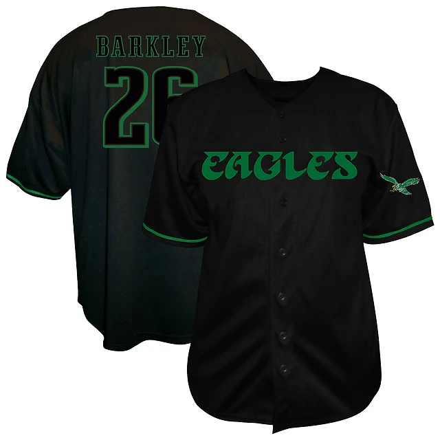 Men's Fanatics Saquon Barkley Black Philadelphia Eagles Big & Tall Baseball Button-Up Shirt