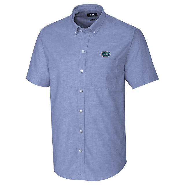Men's Cutter & Buck Royal Florida Gators Stretch Oxford Button-Down Short Sleeve Shirt