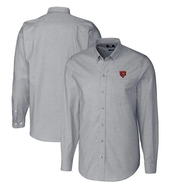 Men's Cutter & Buck Charcoal Chicago Bears Throwback Logo Big & Tall Stretch Oxford Button-Down Short Sleeve Shirt