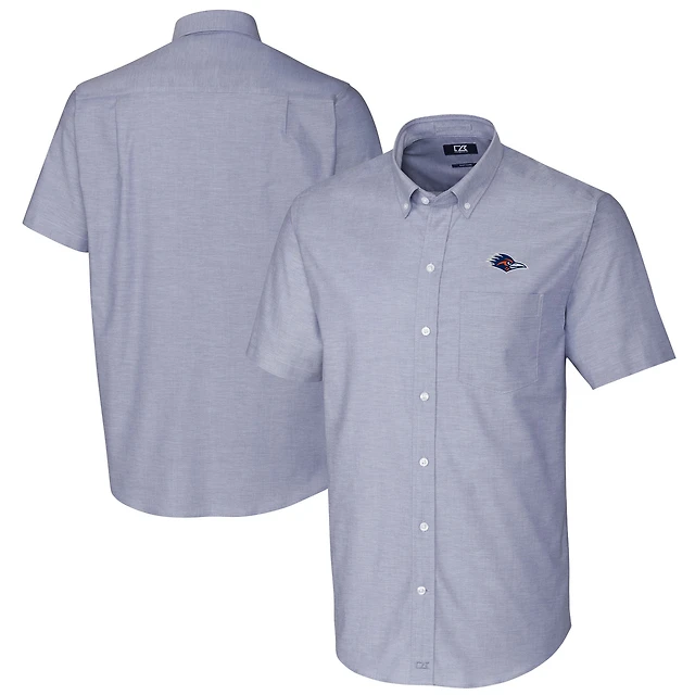 Men's Cutter & Buck Powder Blue Fresno State Bulldogs Vault Stretch Oxford Short Sleeve Button-Down Shirt