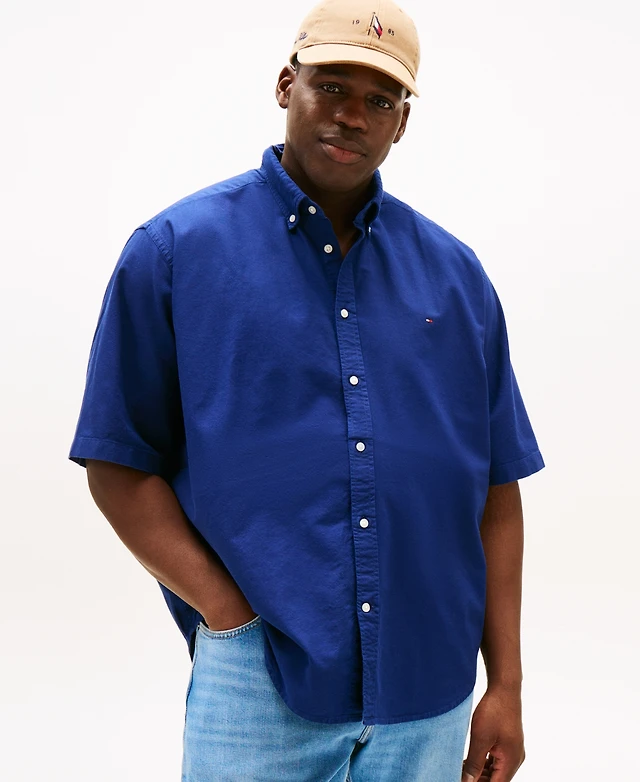 Tommy Hilfiger Men's Big & Tall Relaxed Fit Short Sleeve Button-Down Garment Dyed Oxford Shirt