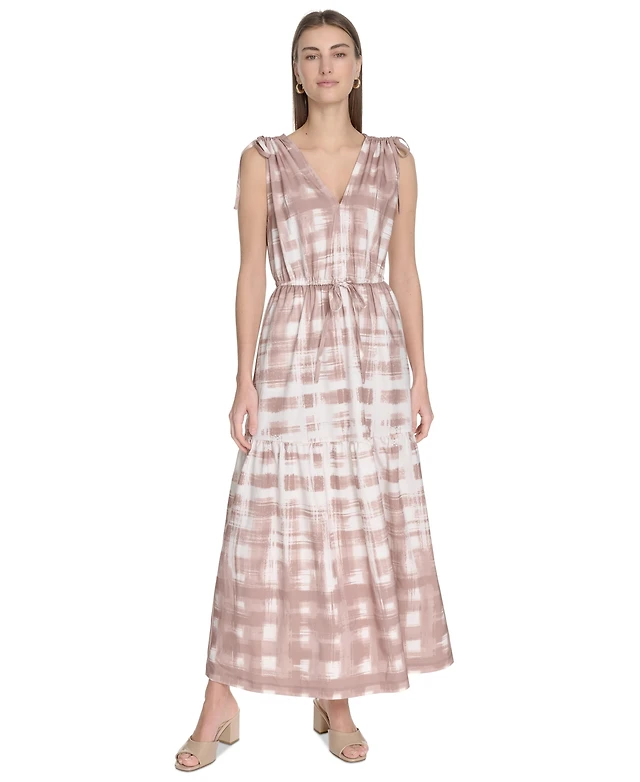 Calvin Klein Women's Printed V-Neck A-Line Midi Dress