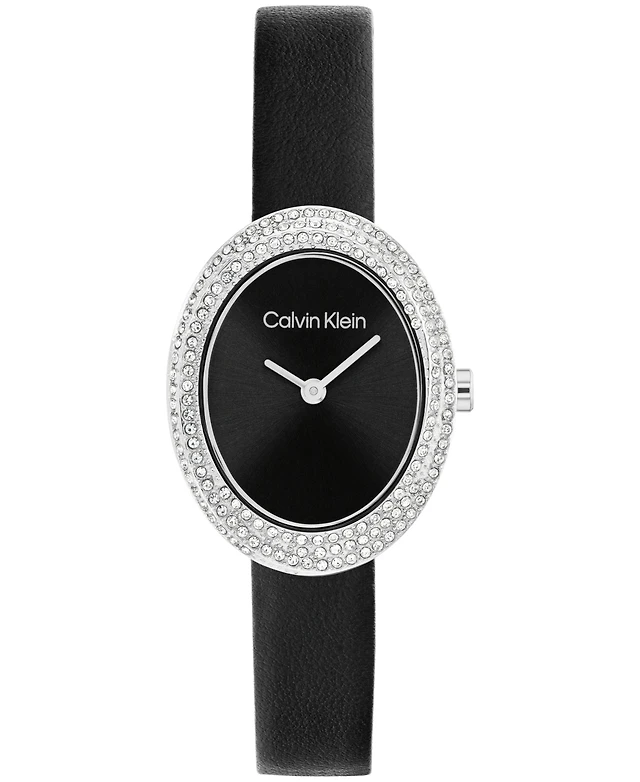 Calvin Klein Women's Elongated Black Leather Strap Watch, 18.5 x 20.5mm