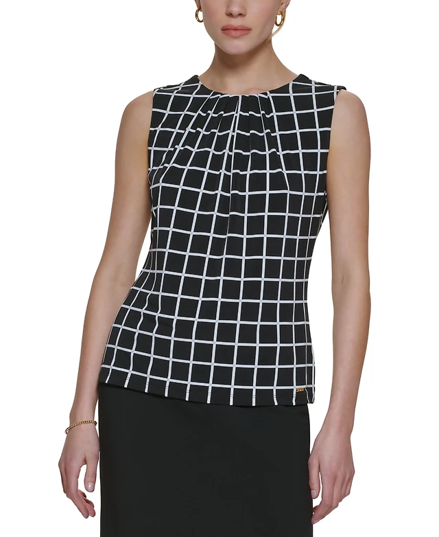 Calvin Klein Pleat Neck Sleeveless Top, Regular and Petite Sizes