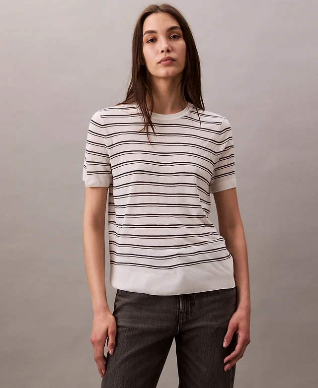 Calvin Klein Women's Short-Sleeve Striped Sweater
