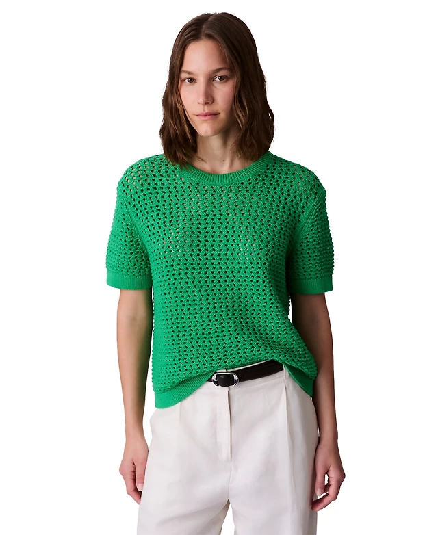 Calvin Klein Jeans Women's Cotton Open-Stitch Short-Sleeve Sweater
