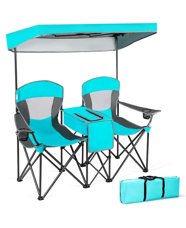Sugift Turquoise Portable Folding Camping Canopy Chairs with Cup Holder