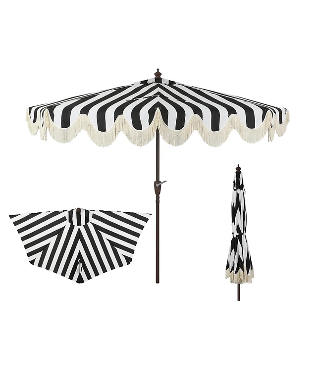 Jonathan Y 9ft Half Market Umbrella, Scalloped Fringe, Crank, Button Tilt, Uv Protection
