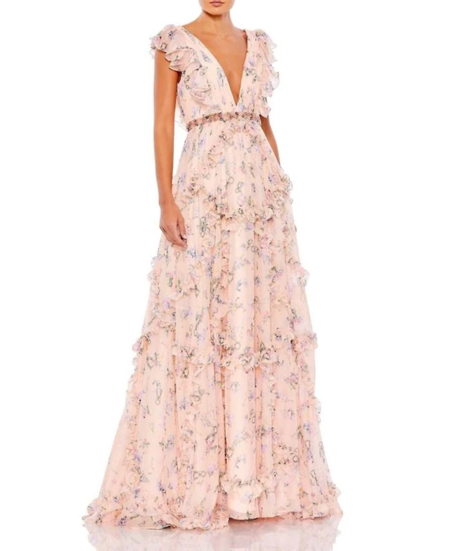 Vince Camuto Women's Ruffle-Sleeve Tiered Maxi Dress