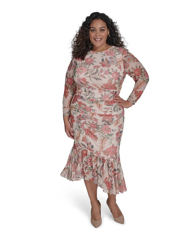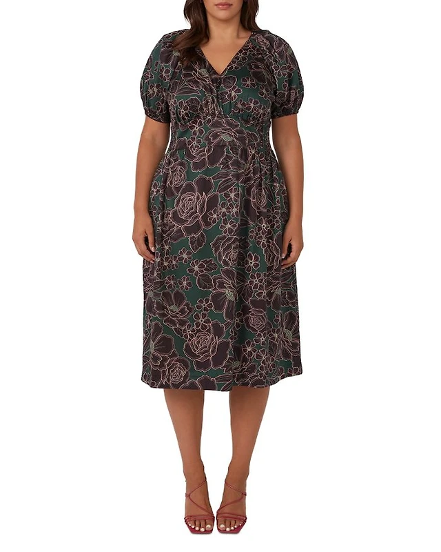 Connected Plus Printed Tiered Short-Sleeve Sheath Dress