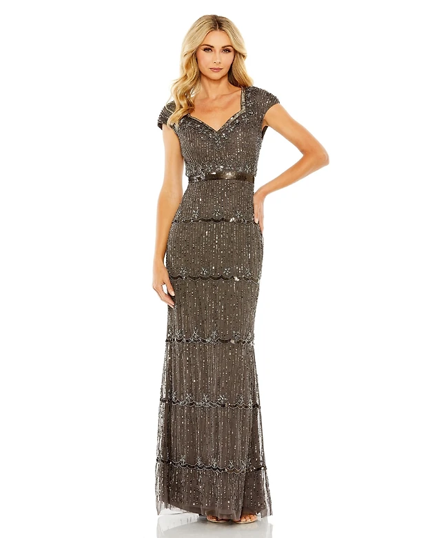 R & M Richards Women's Sequinned Flutter-Sleeve Cocktail Dress