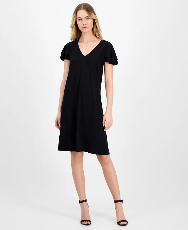 Kasper Kat Elbow-Sleeve Ruffled-Cuff Dress