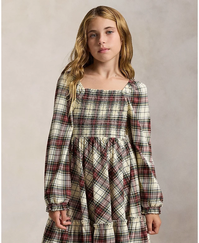 Polo Ralph Lauren Girls 7-16 Long Sleeve Shirred Waist Dress