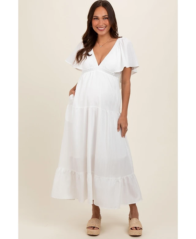 CeCe Women's Lace Flutter-Sleeve V-Neck Smocked-Waist Maxi Dress