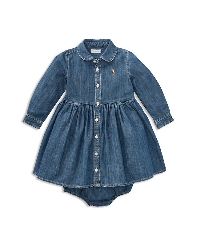 Petite 3/4 Roll Tab Sleeve Denim Dress