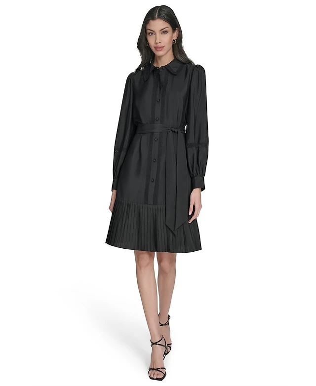 Eliza J Petite Pleated Long Sleeve Shirt Dress